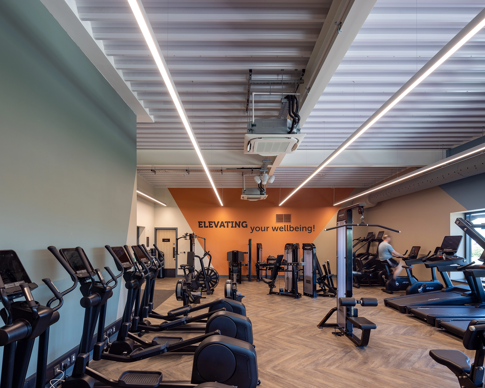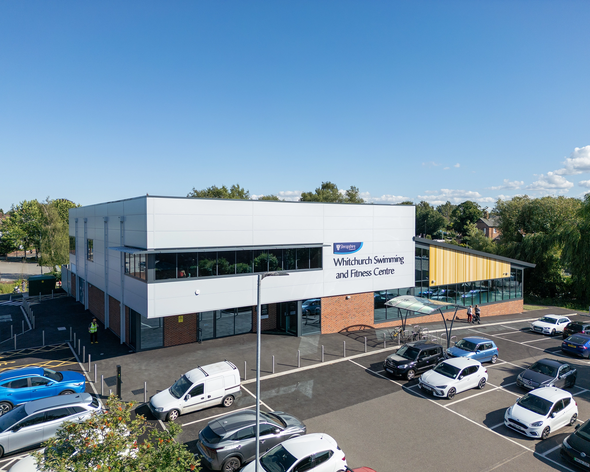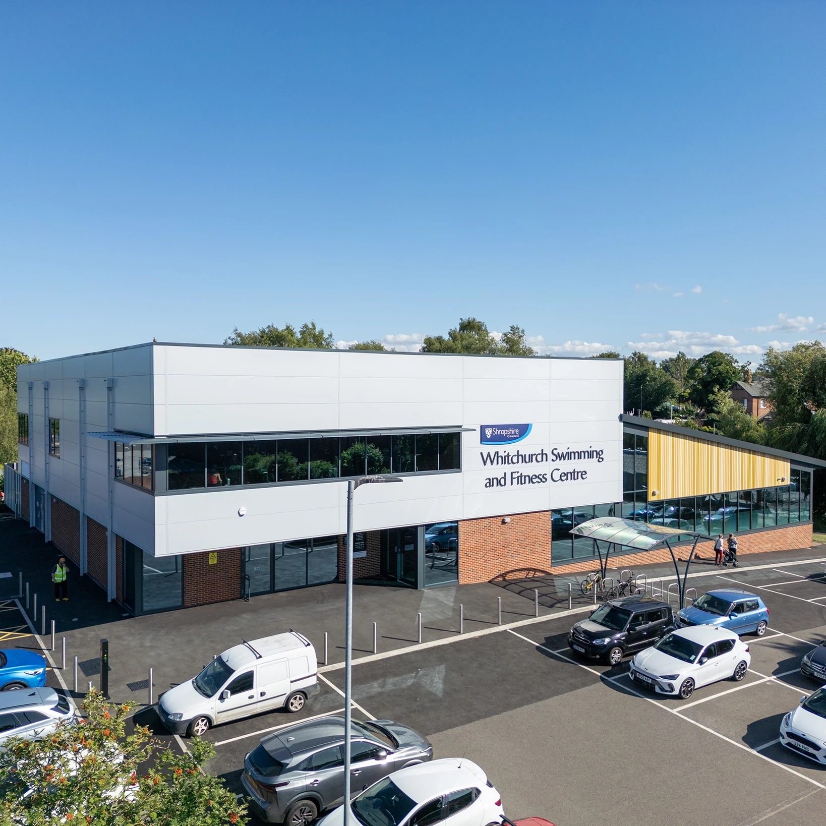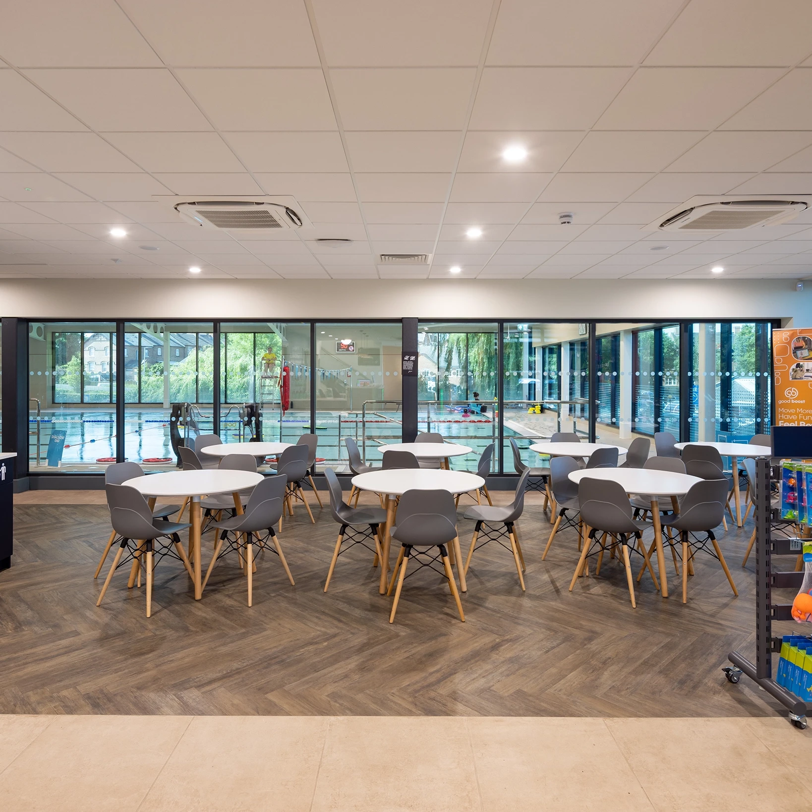 The new facility includes a six-lane, 25-metre pool, a 41-station gym, two fitness studios, and a 20-cover café, all built in line with Sport England’s design guidance. The ground floor houses the pool, café, and changing village, while the upper floor features the gym and flexible studio space.